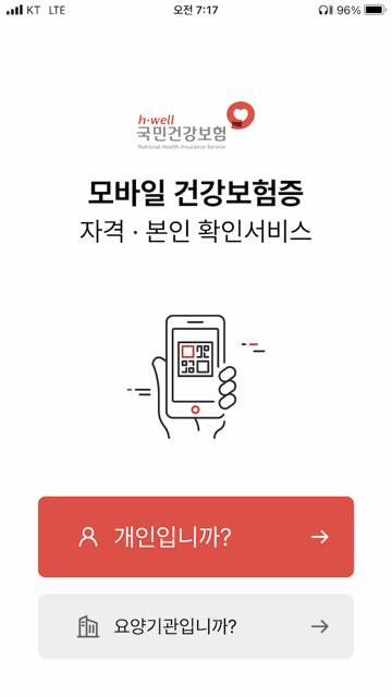 - 의료기관 직원이 QR 코드를 스캔하여 건강보험 자격을 확인합니다.